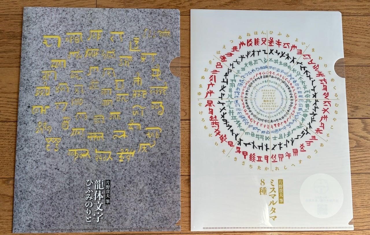 片野貴夫筆によるメモスビ文字(上古第十代高皇産霊天皇(たかみむすびすめらみこと)の 「と」が刻印 されています。